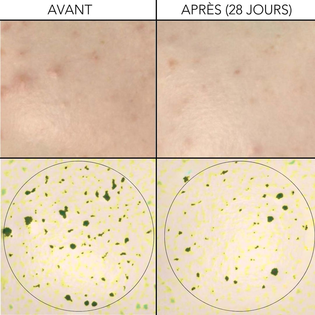 Consultez les résultats de nos tests cliniques après 28 jours. Chaque personne est différente et cela dépend de la sévérité des imperfections.