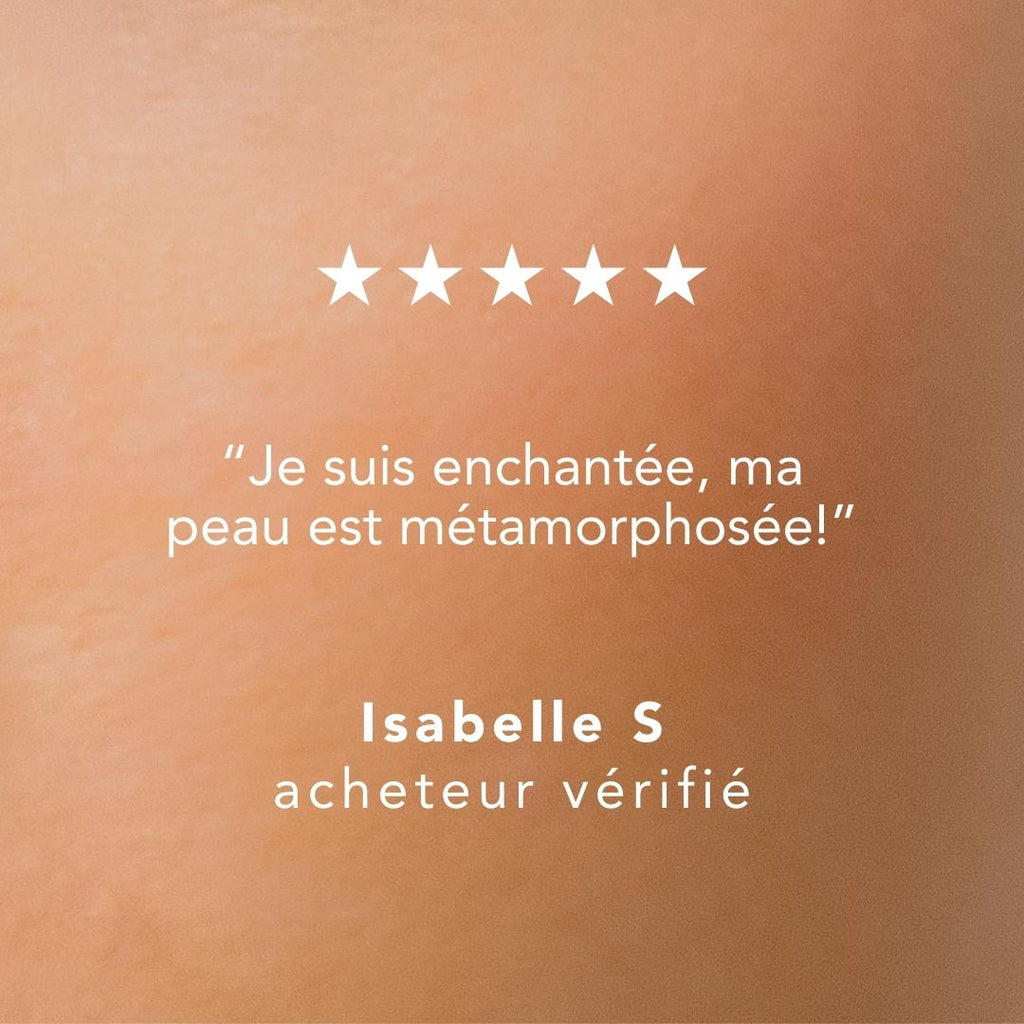 Contrairement à la vitamine C pure à base d'eau qui nécessite une concentration de 15 à 20 % pour être efficace, notre formule est plus stable et non-photosensibilisante.