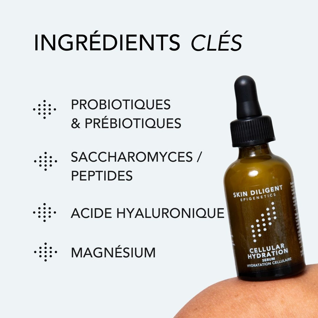 - Hydratation Optimale : L'association d'une dose parfaitement calibrée d'acide hyaluronique et de magnésium stimule de manière synergétique l'hydratation et la résilience de la peau, minimisant ainsi efficacement les rides et ridules.